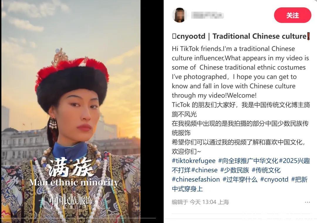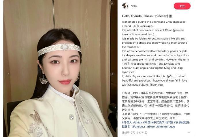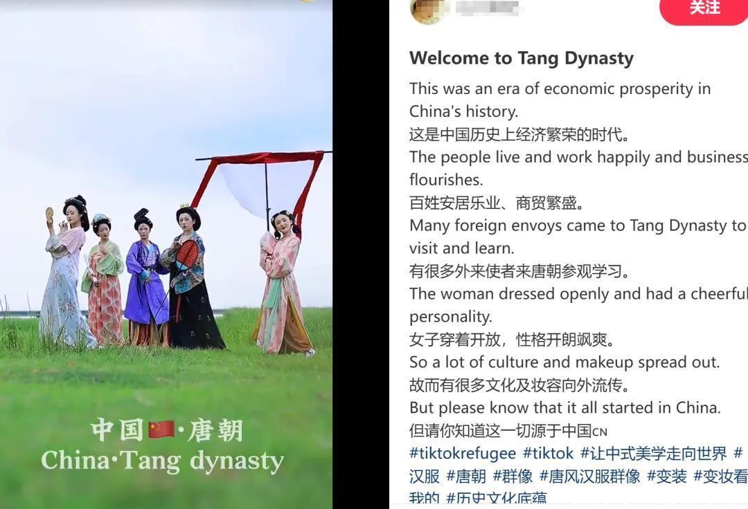 而一些传统文化爱好者用中英双语介绍我们伟大又繁荣的历史,比如传统民族的服饰等等。