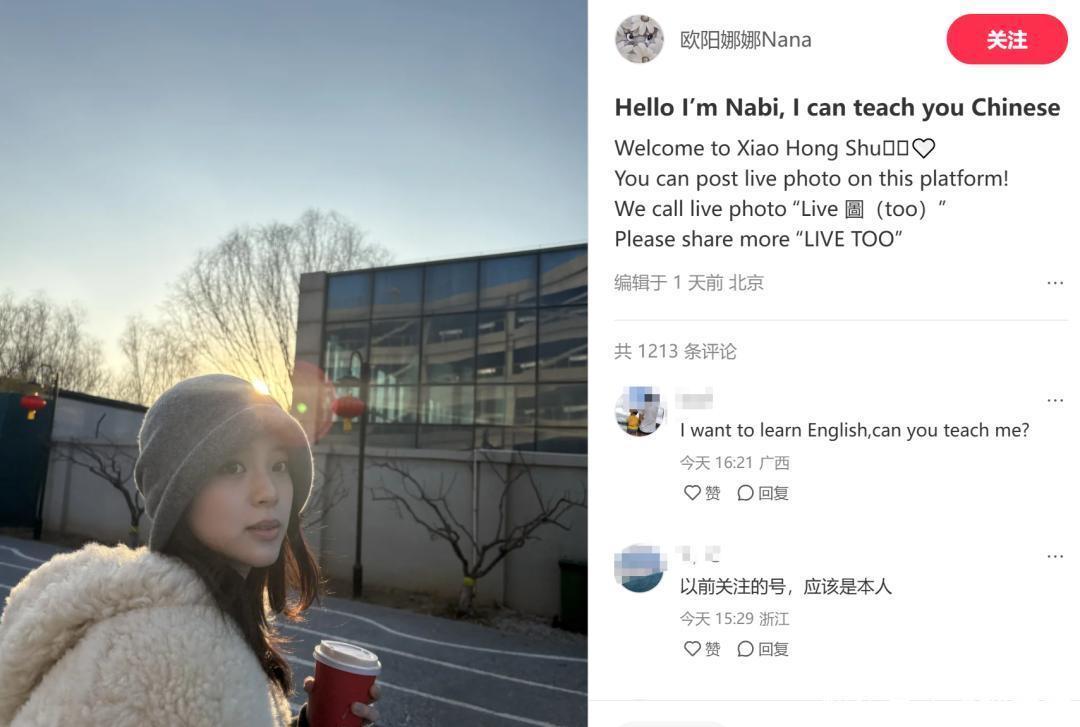 欧阳娜娜也用英文文案欢迎外国友人的到来,她还教外国人发动图的玩法,语气轻松有趣。而因为使用了全英文,有网友建议请双语输出,也是很好笑。