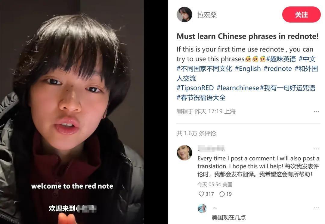 博主拉宏桑还用英文文案告诉外国友人如何学习中文短句,并示范了几句常见的打招呼等用语,不过她教的例子很有趣,都是文绉绉的古风,比如道歉用“小女子不才”等,惊讶用“噫吁嚱”......当然也有普通的“给我钱”,贴心的是她还给每一句中文都标了“拼音”,外国友人也耐心评论表示自己留言会附带翻译。